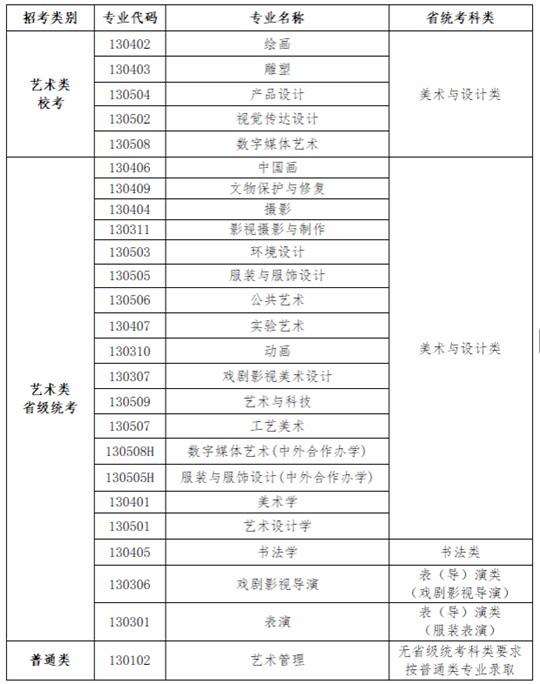 按教育部相關要求,報考我校藝術類專業(yè)的考生須按我校各專業(yè)與省級統(tǒng)考科類對應要求參加相應省級統(tǒng)考,我校2026年各專業(yè)招考類別和省級統(tǒng)考科類對應要求如下: