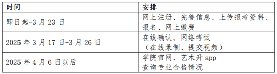 參加網(wǎng)絡視頻考試的考生須在我院規(guī)定時間內(nèi),通過學院指定考試平臺完成網(wǎng)上注冊、完善信息、報考資料上傳(包括給本人拍頭像照、上傳本人身份證、上傳天津市高職分類考試報名確認表、錄制本人短視頻)、報名(選擇學校、考點和專業(yè))、網(wǎng)上繳費、在線確認、網(wǎng)絡考試(在線錄制、提交視頻)七個步驟。學院指定報名、考試平臺:藝術升app。(具體操作辦法詳見《2025年天藝藝術類招生考試平臺操作說明和注意事項》)未按照規(guī)定步驟或者報考資料不全者視為報考不成功,無法參加考試。