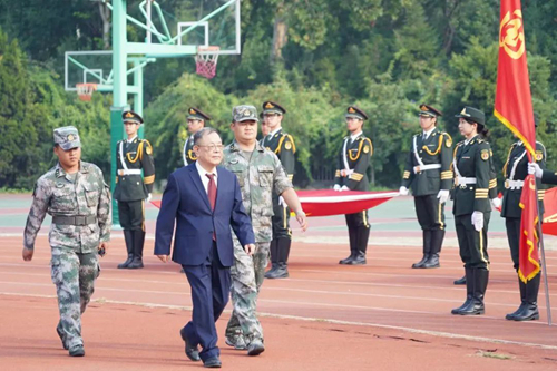 王校長講到:“軍訓(xùn)的時間是短暫的,你們用飽滿的精神、整齊的動作、昂揚(yáng)的斗志向?qū)W校交了第一份令人滿意的答卷,更得到了一生為之自豪的寶貴經(jīng)歷。請大家永遠(yuǎn)牢記教官們的身教言傳,把這幾天的所見、所聞和所感,把解放軍戰(zhàn)士的優(yōu)良作風(fēng)帶到今后的學(xué)習(xí)生活中去,成為不斷完善自我、爭取更大進(jìn)步的源泉,成為不斷促進(jìn)你們健康成長的不竭動力!