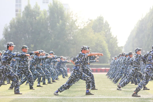 升旗儀式之后,進(jìn)行的是軍訓(xùn)成果匯報表演。
