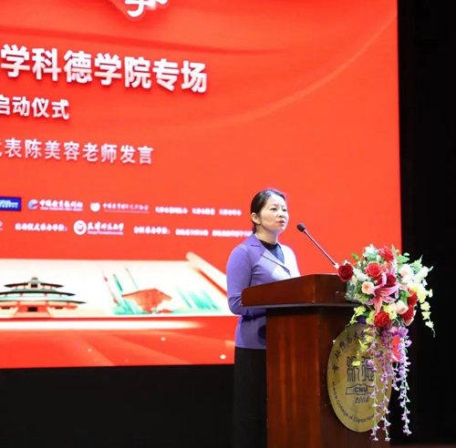 啟動儀式上,科德學院周瑛副校長首先致辭。她首先對新航道、繼續(xù)教育學院、國際教育學院、教務處、國際文化學院領(lǐng)導和老師們組織科德專場活動表示感謝,還特別肯定了大學英語和雅思英語教研室的老師們對學生積極參與活動的引領(lǐng)和帶動作用。周副校長指出,講中國故事是時代命題,加強溝通,匯聚共識,深入關(guān)注優(yōu)秀中華文化的思想精神是當前的迫切需要。通過“用英語講中國故事”活動,會讓更多的青年人更深刻感悟中華文化內(nèi)涵,并從中汲取中國智慧,進而弘揚中國精神,傳播中國價值,成為中華文化的優(yōu)秀傳承人。在致辭的最后,周副校長表達了對參賽選手的殷切期望,期待他們在下一階段的比選活動中取得佳績。