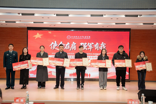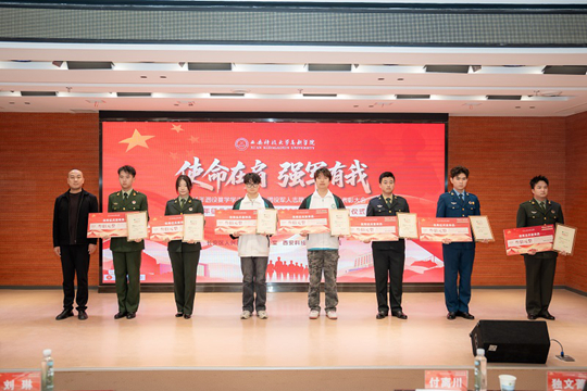 12月10日,西安科技大學(xué)高新學(xué)院2025年退役復(fù)學(xué)學(xué)生歡迎會(huì)、退役軍人志愿服務(wù)隊(duì)換屆暨表彰大會(huì)、2025年征兵工作總結(jié)表彰暨2026年征兵宣傳啟動(dòng)儀式,在學(xué)院圖書館報(bào)告廳隆重舉行。
