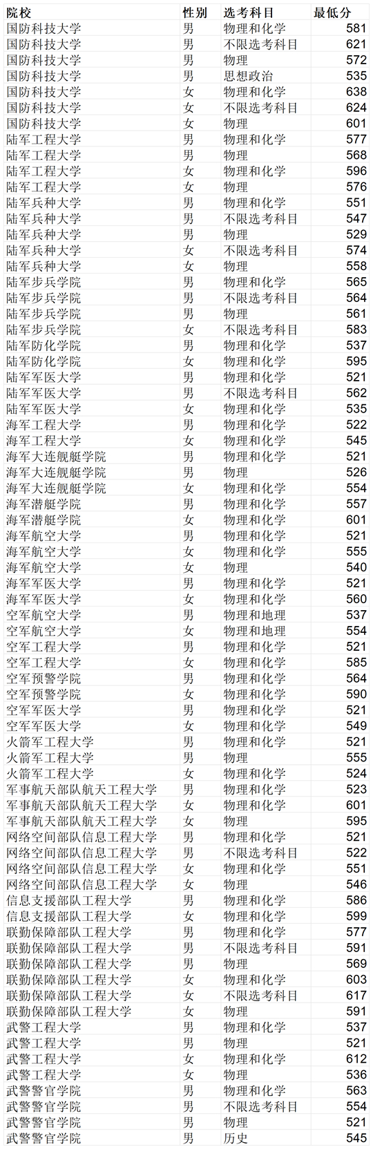 山東省2025年軍隊(duì)院校招收普通高中畢業(yè)生軍檢須知、軍檢資格名單及資格線公示