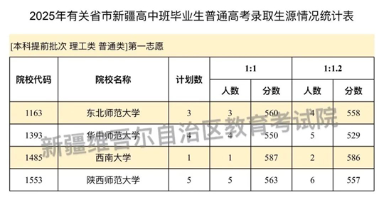 按照錄取工作安排,2025年有關(guān)省市新疆高中班畢業(yè)生普通高考招生本科提前批次投檔錄取工作于7月19日開(kāi)始,新疆教育考試院根據(jù)投檔原則進(jìn)行了投檔,現(xiàn)將部分院校生源情況公布如下: