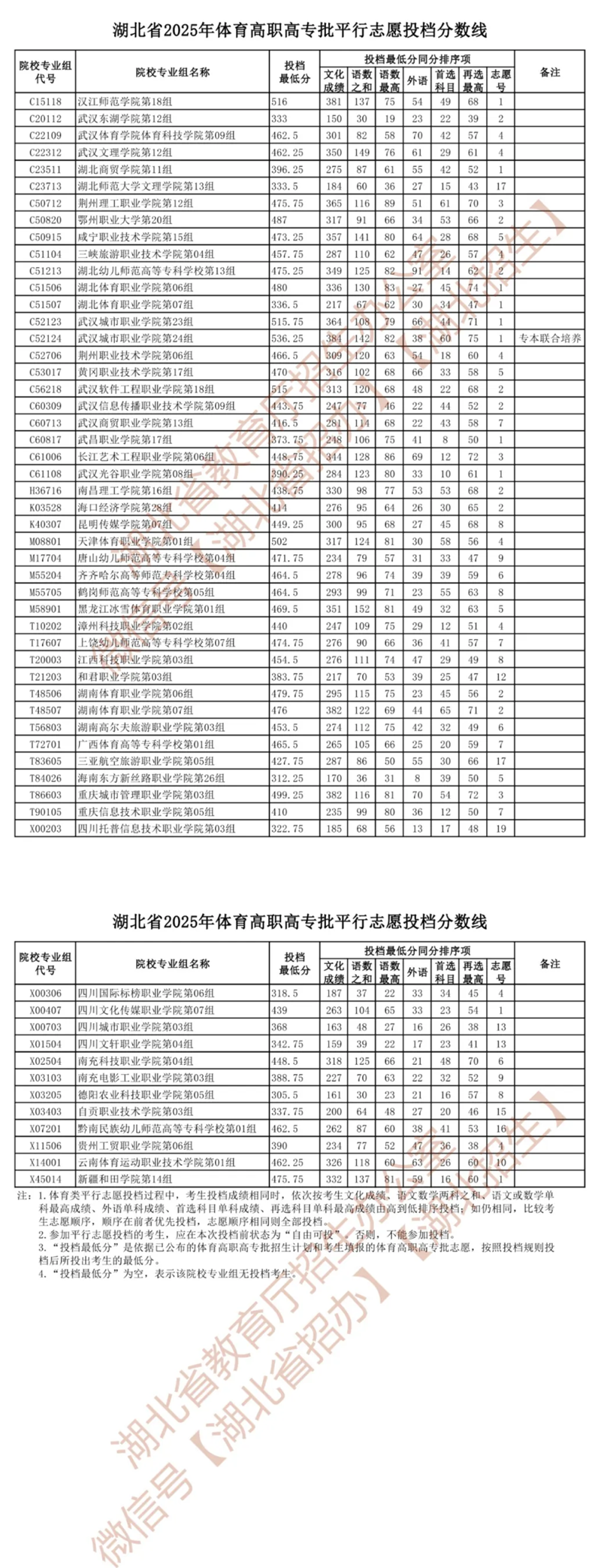 湖北省2025年體育高職高專(zhuān)批平行志愿投檔分?jǐn)?shù)線(xiàn)