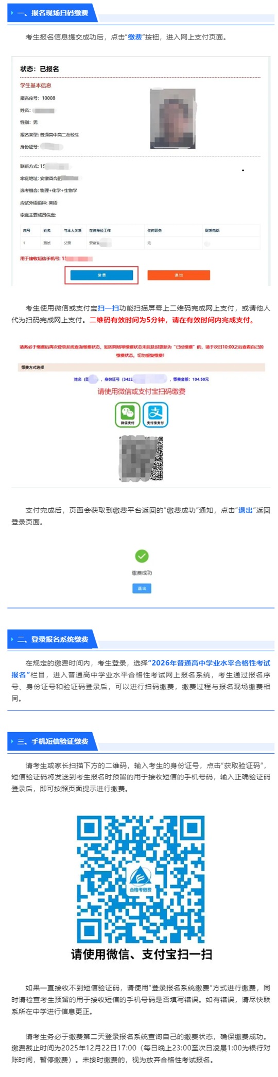| 安徽省2026年普通高中學(xué)業(yè)水平合格性考試報(bào)名考試費(fèi)繳費(fèi)流程 |