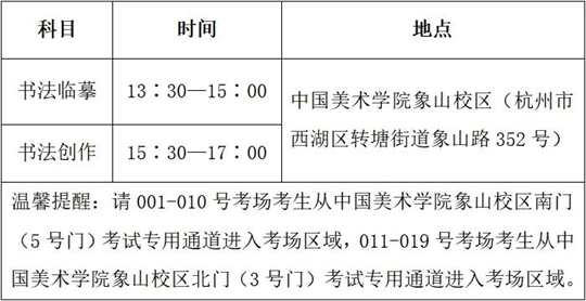 書法類省統(tǒng)考包括書法臨摹、書法創(chuàng)作兩個(gè)科目,均在2025年12月8日下午開考,具體考試時(shí)間和地點(diǎn)如下: