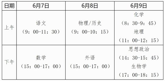 特別說明:《通知》中“6月8日9:00至11:30文科綜合/理科綜合”是對于高考綜合改革未落地省份的考試安排,我區(qū)在該時段安排了物理和歷史2門首選科目考試。