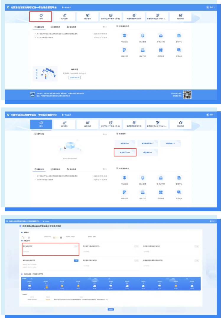 | 內(nèi)蒙古:2025年普通高考準(zhǔn)考證打印功能今日開通 |