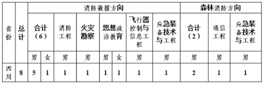 2025年中國消防救援學(xué)院計劃在四川省招收8名青年學(xué)生(男生7名、女生1名;理科6人、文科2人)。其中,消防救援方向6人(含女生1人),森林消防方向2人,具體招生計劃詳見下表。