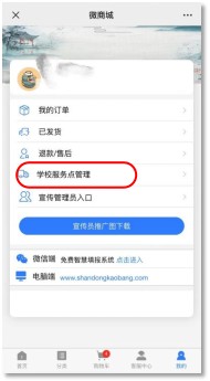 (二)集體訂閱。如果考生想把就讀學(xué)校作為收取雜志的地點(diǎn),且學(xué)校有意愿建立服務(wù)點(diǎn),學(xué)校訂閱工作聯(lián)系人可掃描上方二維碼,登錄“微商城—學(xué)校服務(wù)點(diǎn)管理”申請?jiān)O(shè)立學(xué)校自提服務(wù)點(diǎn)(見下圖)。審批通過后,以服務(wù)點(diǎn)為單位訂閱雜志。集體訂單將于秋季學(xué)期開學(xué)后,9月上旬發(fā)書。