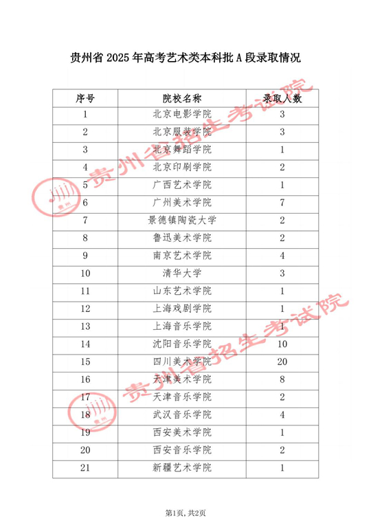 貴州省2025年高考藝術(shù)類本科批A段錄取情況