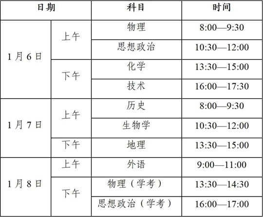 | 1月6日—8日,浙江選考學考開考 |