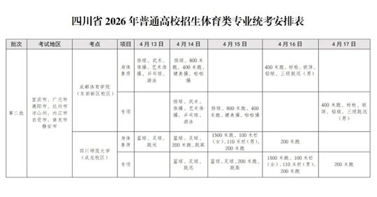 | 四川省2026年普通高校招生體育類專業(yè)統(tǒng)考安排公告 |