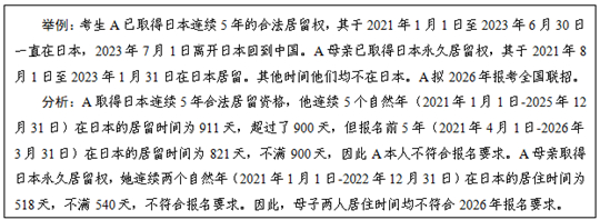 、偃〉米≡趪L期或永久居留權(quán),連續(xù)兩個(gè)自然年(即某年1月1日至次年12月31日)和報(bào)名前2年內(nèi)(即2024年4月1日至2026年3月31日)在住在國實(shí)際累計(jì)居留均不少于540天。
