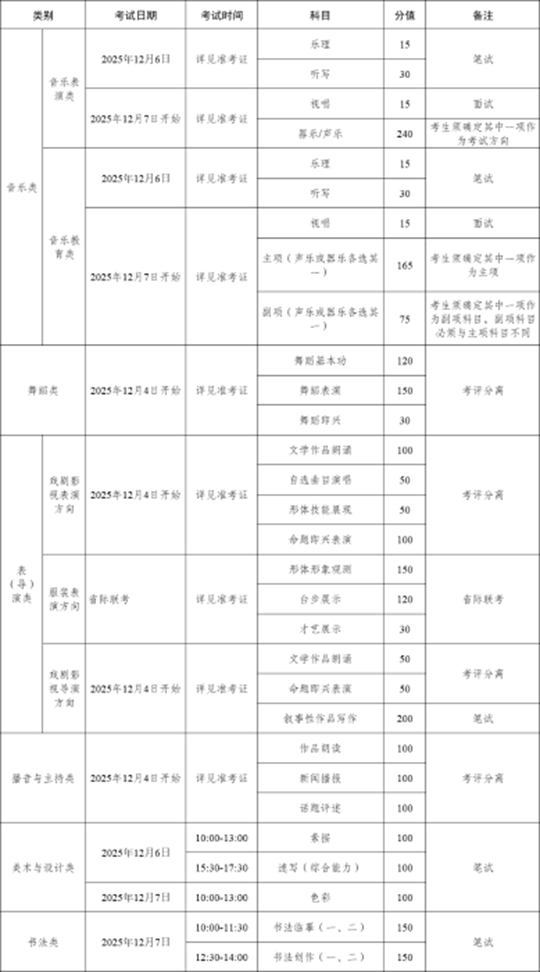 (3)表(導(dǎo))演類(戲劇影視表演和戲劇影視導(dǎo)演方向):2025年12月4日開始。