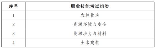 根據(jù)《職業(yè)教育專業(yè)目錄》,將職業(yè)技能考試劃分為19個(gè)組類,對應(yīng)19個(gè)專業(yè)大類。