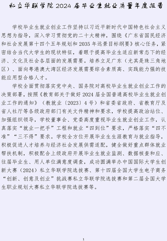 私立華聯(lián)學(xué)院2024屆畢業(yè)生就業(yè)質(zhì)量年度報(bào)告