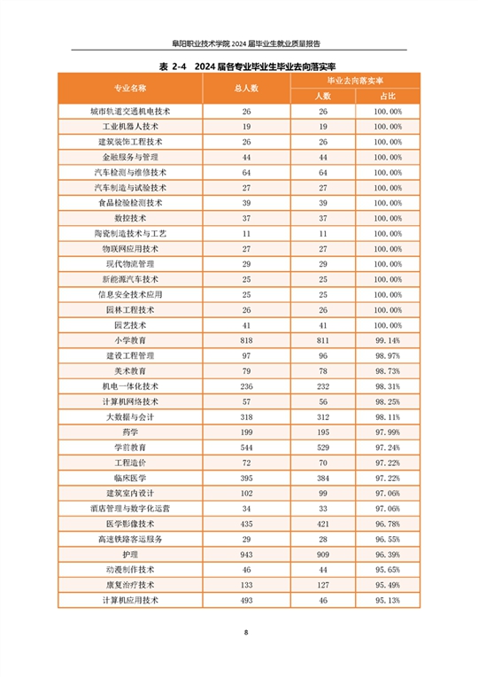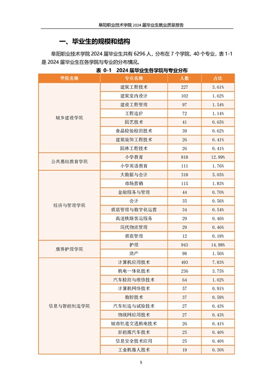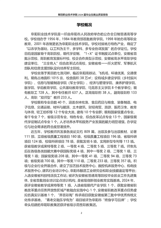 阜陽職業(yè)技術(shù)學(xué)院2024屆畢業(yè)生就業(yè)質(zhì)量年度報告