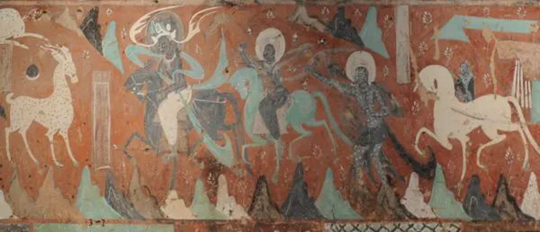 《郊游》敦煌莫高窟第257窟《鹿王本生圖》是北魏時(shí)期的作品,屬敦煌壁畫早期作品,其造型用線簡練概括,結(jié)構(gòu)清晰合理,構(gòu)圖長卷平鋪,色彩協(xié)調(diào)統(tǒng)一,具有中國傳統(tǒng)審美特點(diǎn),從內(nèi)容到表現(xiàn)手法都體現(xiàn)出中國傳統(tǒng)繪畫最基本的特征。