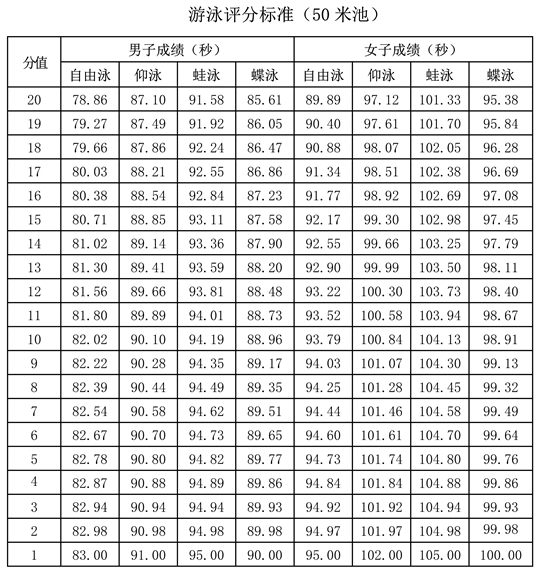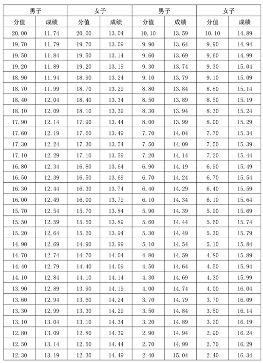 。ㄒ唬100米跑素質(zhì)考試評分表