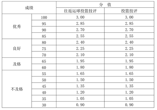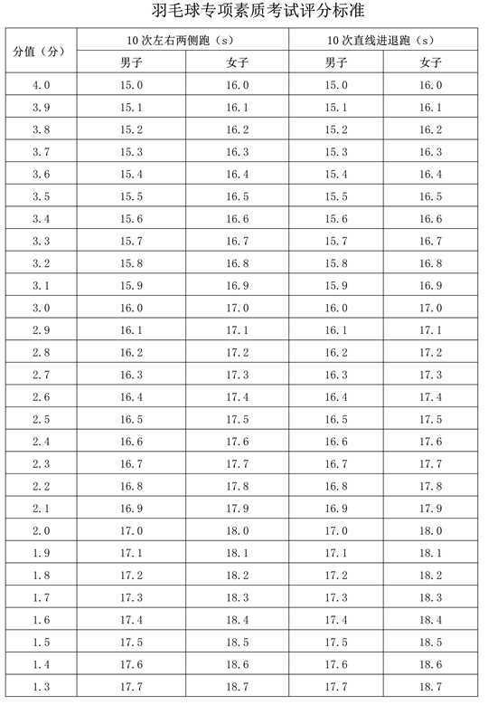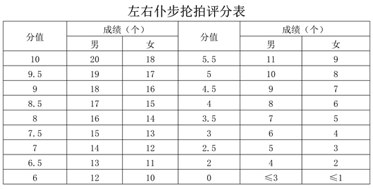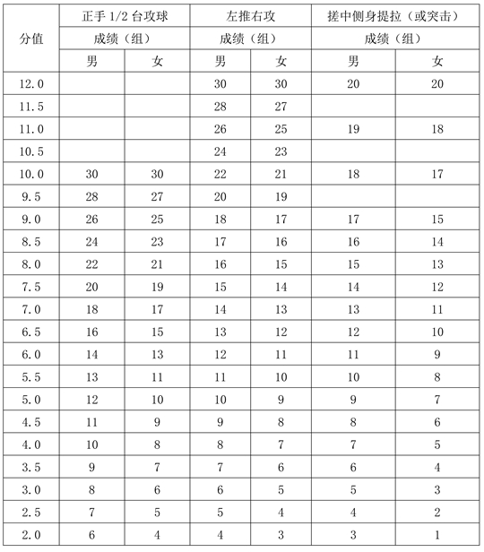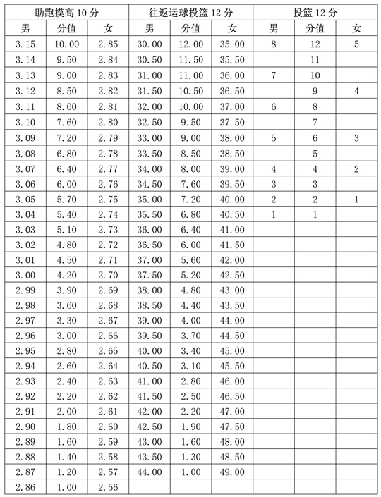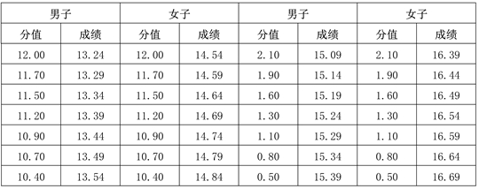 專項素質(zhì)滿分為12分。每項測驗內(nèi)容達(dá)到要求者可得評分表規(guī)定的滿分。達(dá)不到要求者視其情況扣分。其中達(dá)標(biāo)項目評分標(biāo)準(zhǔn)為: