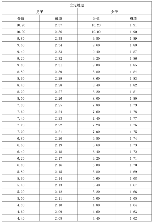 (二)立定跳遠(yuǎn)評分表(單位:米)