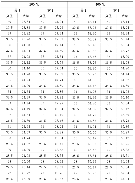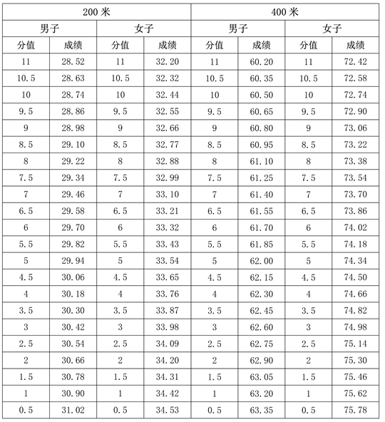 1.200米、400米專項評分表(單位:秒)