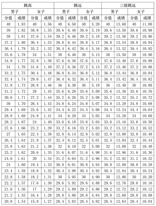 3.跳高、跳遠(yuǎn)、三級跳遠(yuǎn)專項評分表(單位:米)