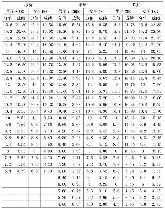 4.標(biāo)槍、鉛球、鐵餅專項評分表(單位:米)