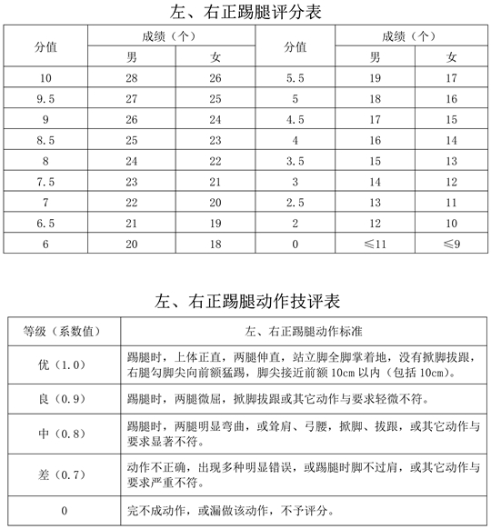 B.左、右正踢腿評分標(biāo)準(zhǔn)和考試方法(10分)