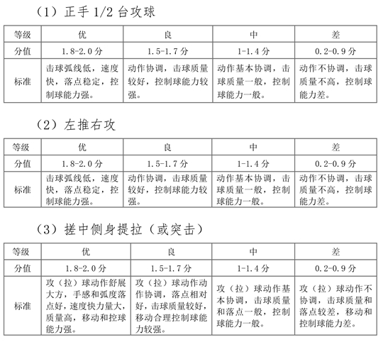 2.乒乓球定性評分表(共6分)