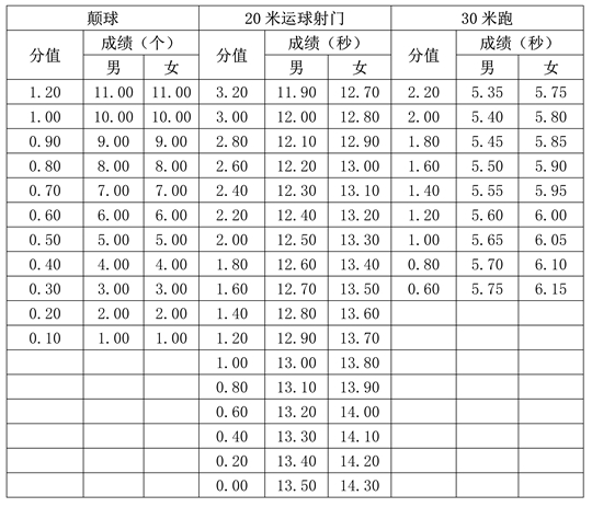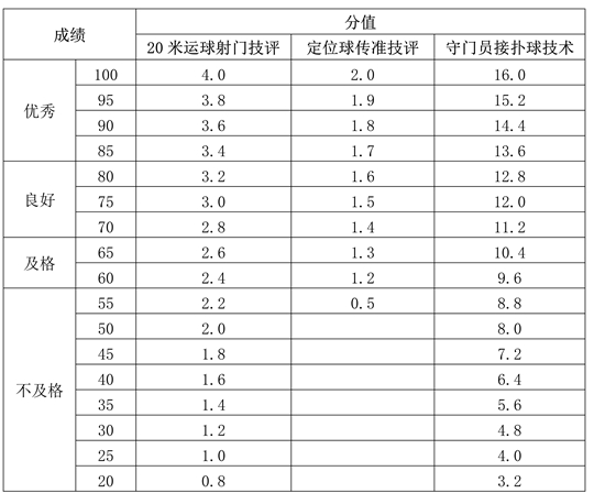 2.20米運球射門技評、定位球傳準(zhǔn)技評、守門加試定性評分表