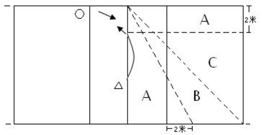 如圖所示。教師在對方場區(qū)側(cè)手發(fā)球,考生在后場區(qū)6號位接10個發(fā)球。要求墊球弧度不低于球網(wǎng),若球的飛行弧度低于球網(wǎng)上沿,則在相應(yīng)得分中扣去0.3分