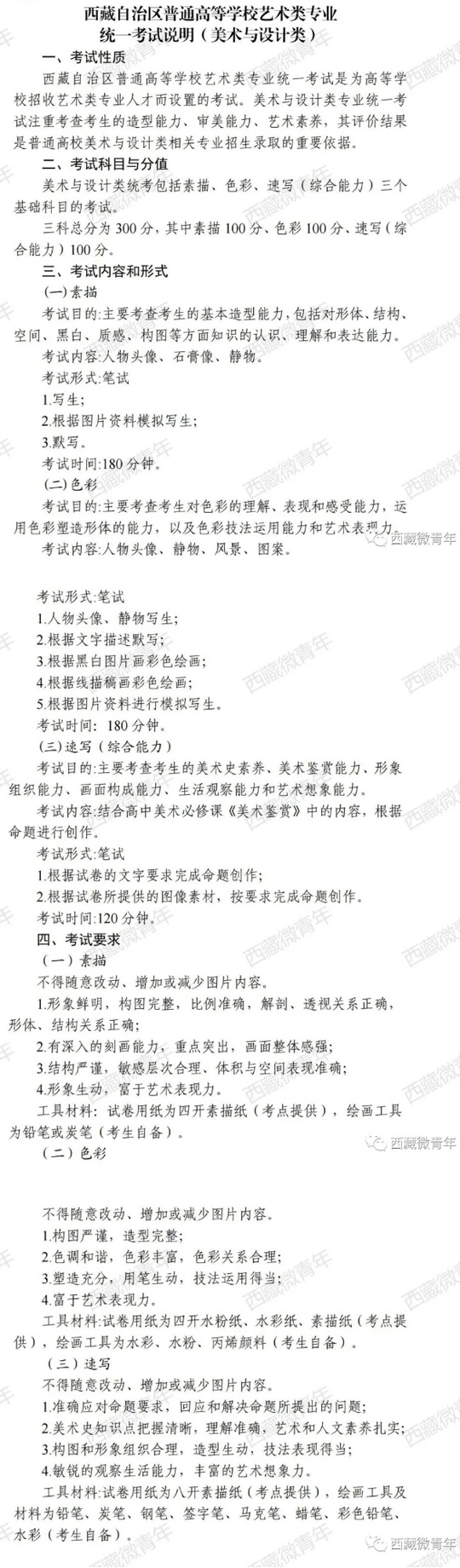 西藏自治區(qū)普通高等學(xué)校藝術(shù)類專業(yè)統(tǒng)一考試說明(美術(shù)與設(shè)計(jì)類)