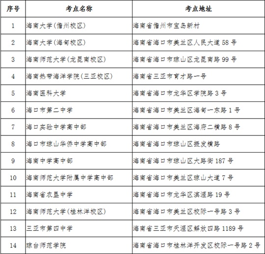 我省共設(shè)有14個考點,詳見下表:
