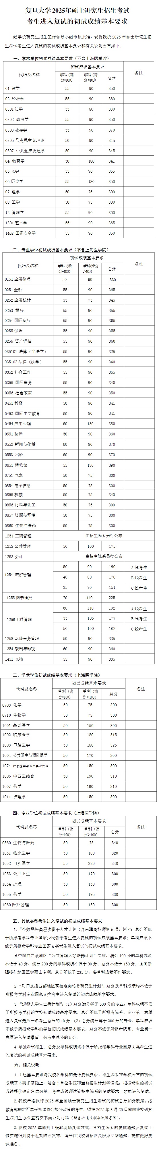 復(fù)旦大學(xué)2025年碩士研究生招生考試考生進(jìn)入復(fù)試的初試成績基本要求