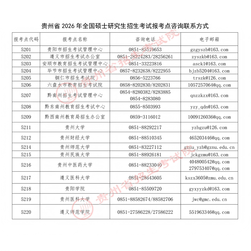 七、貴州省2026年全國碩士研究生招生考試報考點咨詢聯(lián)系方式