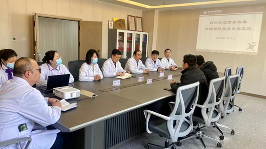 鄭瑞世院長(zhǎng)對(duì)西安海棠職業(yè)學(xué)院就業(yè)科老師一行的到來表示熱烈歡迎,并對(duì)醫(yī)院基本情況、發(fā)展?fàn)顩r、教學(xué)情況等方面進(jìn)行了簡(jiǎn)要介紹,充分肯定了學(xué)院培養(yǎng)的畢業(yè)生具有較高的理論素質(zhì)和實(shí)踐動(dòng)手能力,尤其是在“疫情三年防控”工作中認(rèn)真負(fù)責(zé),主動(dòng)擔(dān)當(dāng),任勞任怨,充分展現(xiàn)出“當(dāng)代時(shí)代青年”的精神風(fēng)貌。鄭瑞世院長(zhǎng)并表示,教育實(shí)習(xí)基地在醫(yī)學(xué)人才培養(yǎng)中具有重要作用,是推動(dòng)教育教學(xué)改革和提高醫(yī)學(xué)生教學(xué)技能的重要舉措,希望以本次基地掛牌為契機(jī),繼續(xù)加強(qiáng)與西安海棠學(xué)院交流合作,多方面拓展合作空間,攜手共進(jìn),共謀發(fā)展,把實(shí)習(xí)實(shí)訓(xùn)基地打造成促進(jìn)雙方共同發(fā)展的高質(zhì)量平臺(tái),也借此機(jī)會(huì)歡迎海棠學(xué)院優(yōu)秀畢業(yè)生來唐城醫(yī)院工作,實(shí)現(xiàn)人生價(jià)值。