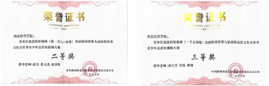 啟動儀式上,表彰了陜西省第九屆高校法治文化宣傳季青少年法治短視頻大賽、優(yōu)秀法治文化作品、優(yōu)秀組織單位等獲獎單位和個人。西安培華學院選送的短視頻《第一百八十四條》獲青少年法治短視頻大賽二等獎,《一千五預算》獲青少年法治短視頻大賽三等獎,學校榮獲“優(yōu)秀組織單位”獎。