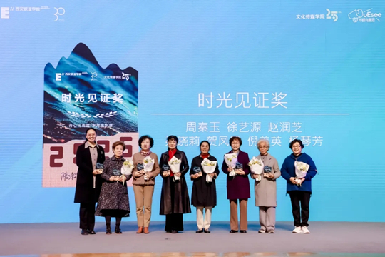 頒獎環(huán)節(jié),西安歐亞學院董事長胡建波教授為文化傳媒學院首任院長劉建勛頒發(fā)“文傳奠基獎”。當周秦玉、徐藝源、趙潤芝等7位退休教職工登臺時,臺下響起熱烈的掌聲,文化傳媒學院老師閆晉瑛為他們頒發(fā)“時光見證獎”并合影留念。辛峰、侶懋、張詩楠等10位優(yōu)秀校友獲得“蒲公英獎”,他們詮釋了傳媒人如何在不同土壤中生根發(fā)芽,文化傳媒學院副院長曹小娟為他們頒獎。“薪火相傳”時刻,老院長劉建勛將使命傳遞給文化傳媒學院6位新進教師,前浪引后浪,傳承在此刻接力交匯。
