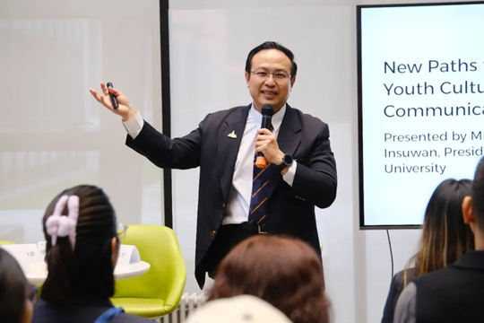 陜西網(wǎng)國際傳播外宣平臺“長小安”項目在工作坊正式亮相,陜西網(wǎng)國際傳播中心負責人王湧以“一事一生”的慢視角向泰方嘉賓傳遞陜西文化,展示東方美學。泰國西北大學校長阿披察·因蘇萬、跨學科研究學院院長緹拉拉·薩查瓦提也分享了他們多年來在創(chuàng)新管理、數(shù)字傳媒與跨境旅游等領(lǐng)域的學術(shù)成果與教育理念,并通過傳統(tǒng)服飾、特色美食等具象載體,為大家生動展現(xiàn)了泰國文化的魅力,讓“微笑之國”的風情近距離觸達現(xiàn)場每一位師生。