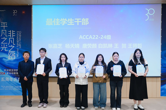 緊接著,西安歐亞學(xué)院會計金融學(xué)院ACCA國際會計優(yōu)秀教師、優(yōu)秀學(xué)生頒獎典禮同步開展。時值“黃金級教育機(jī)構(gòu)”五周年之際,學(xué)院特別設(shè)置了教師獎項“卓越教學(xué)獎”、“最佳支持獎”、“最佳機(jī)考團(tuán)隊”等獎項,用以表彰在教學(xué)一線深耕細(xì)作、創(chuàng)新教學(xué)方法的骨干教師,感謝為項目運(yùn)行提供堅實保障的幕后支撐力量;學(xué)生獎項如“學(xué)習(xí)卓越之星”、“最佳學(xué)生干部”、“最佳貢獻(xiàn)獎”,則旨在肯定學(xué)子們在ACCA學(xué)習(xí)中的勤奮鉆研與優(yōu)異成績,表彰在學(xué)生組織中勇?lián)?zé)任、服務(wù)同學(xué)的先鋒模范,以及為項目發(fā)展積極建言獻(xiàn)策、貢獻(xiàn)力量的優(yōu)秀代表。