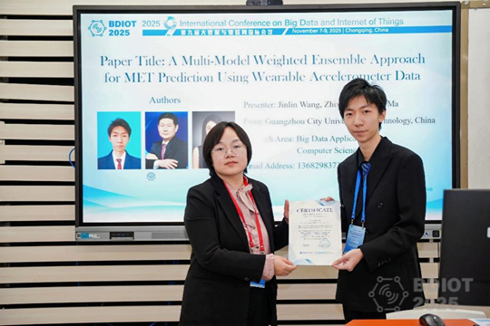 11月8日,從第九屆大數(shù)據(jù)與物聯(lián)網(wǎng)國(guó)際會(huì)議(BDIOT 2025)傳來(lái)喜訊,廣州城市理工學(xué)院管理學(xué)院2022級(jí)大數(shù)據(jù)管理與應(yīng)用專業(yè)王瑾藺同學(xué)以第一作者身份發(fā)表題為《A