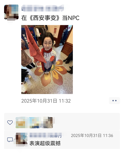 課堂從教室搬到了華清宮的紅墻黛瓦間,我們以“項(xiàng)目制教學(xué)”為筆,以百年歷史為紙,在這座見證過風(fēng)云變幻的園林里,寫下了不一樣的《創(chuàng)意寫作》答卷。沉浸式的歷史還原,當(dāng)《1212西安事變》劇目拉開帷幕。燈光暗下,槍炮聲在耳畔回響,歷史不再是課本上冰冷的文字,而是眼前鮮活的場景、滾燙的情感。我們換上民國校服,化身“民國女學(xué)生”,站在歷史的“片場”中,不僅親歷了那段驚心動魄的歲月,更從角色的視角捕捉到了時代洪流下的個體情緒——這份獨(dú)一無二的體驗(yàn),成了《創(chuàng)意寫作》最好的素材,讓文字有了溫度,讓故事有了靈魂。
