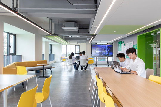 學生發(fā)展處張成老師分享,學校五組調(diào)研團隊對學生進行詳細跟蹤后發(fā)現(xiàn),作為互聯(lián)網(wǎng)原住民的05后,對個人隱私和日常體驗的需求與以往學生有顯著不同,“他們每天有4小時待在教學空間,其余時間則在尋找閱讀、自習、小組討論、社交、聊天、休息甚至發(fā)呆的地方,他們更傾向于社群性質(zhì)的集體活動!睂W校已有的8個青年社區(qū)所確定的共享價值觀,也同樣在趨導設計的方向:整潔、健康、友善、自律。