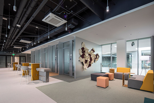 因此,公寓一二層通透寬敞的裙房空間,被設計成承載教學、辦公、研討、觀展及休閑等多元功能的公共場所,成為名副其實的“活力引擎”。