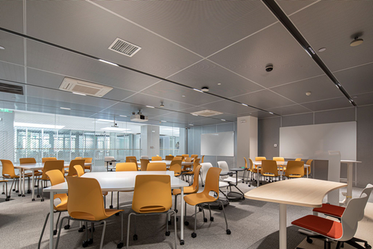 裙樓內(nèi)部設有泡泡空間(圓形教室)、鼓勵自由交流的非正式學習區(qū)、公共討論區(qū)、校企合作會議室、兼具休閑與展覽功能的復合空間、以及充滿社交氛圍的咖啡廳等,講座、展覽、藝術(shù)品展陳等活動也將在這里發(fā)生,激發(fā)即興的交流與碰撞。