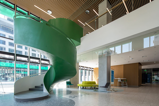 不僅如此,春上山南大堂樓梯等功能性空間的設(shè)計(jì),也被精準(zhǔn)轉(zhuǎn)化為美學(xué)語言,回應(yīng)“全人教育”對場景的要求,在潛移默化中增強(qiáng)學(xué)生的主體認(rèn)同與歸屬感。