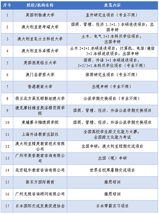 此外,合作院校與新東方國際教育、北京銳爾教育咨詢有限公司等多所機(jī)構(gòu)還舉辦了專場宣講會(huì),為同學(xué)們介紹雅思培訓(xùn)、世界名校寒暑期交流、海外帶薪實(shí)習(xí)等項(xiàng)目,為學(xué)生鋪就多元發(fā)展的國際化道路。